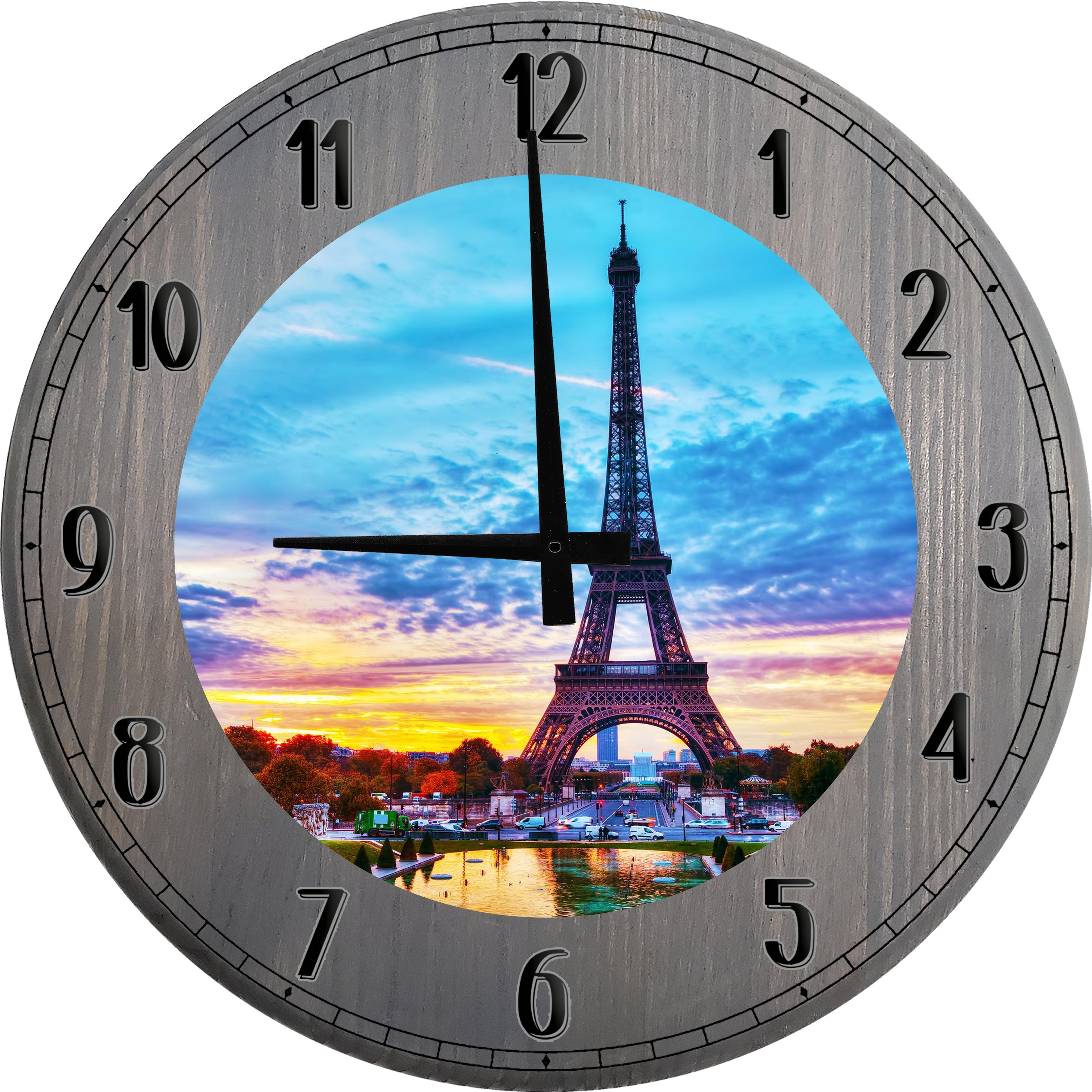 Wood Wall Clock 12 Inch Beautiful Sky Paris Wall Art Scenic Wall Decor Round Small Battery Operated Gray Walmart Com